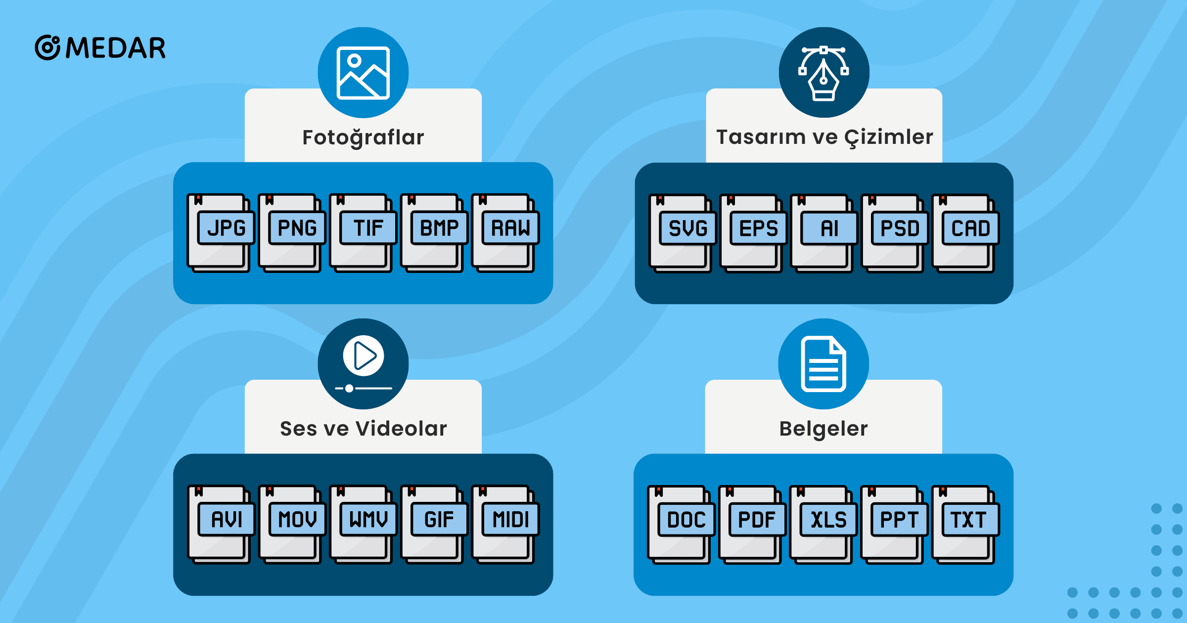 - Çizimler ve Tasarım Dosyaları: Grafik tasarım çalışmaları, illüstrasyonlar, vektörel dosyalar, teknik çizimler.