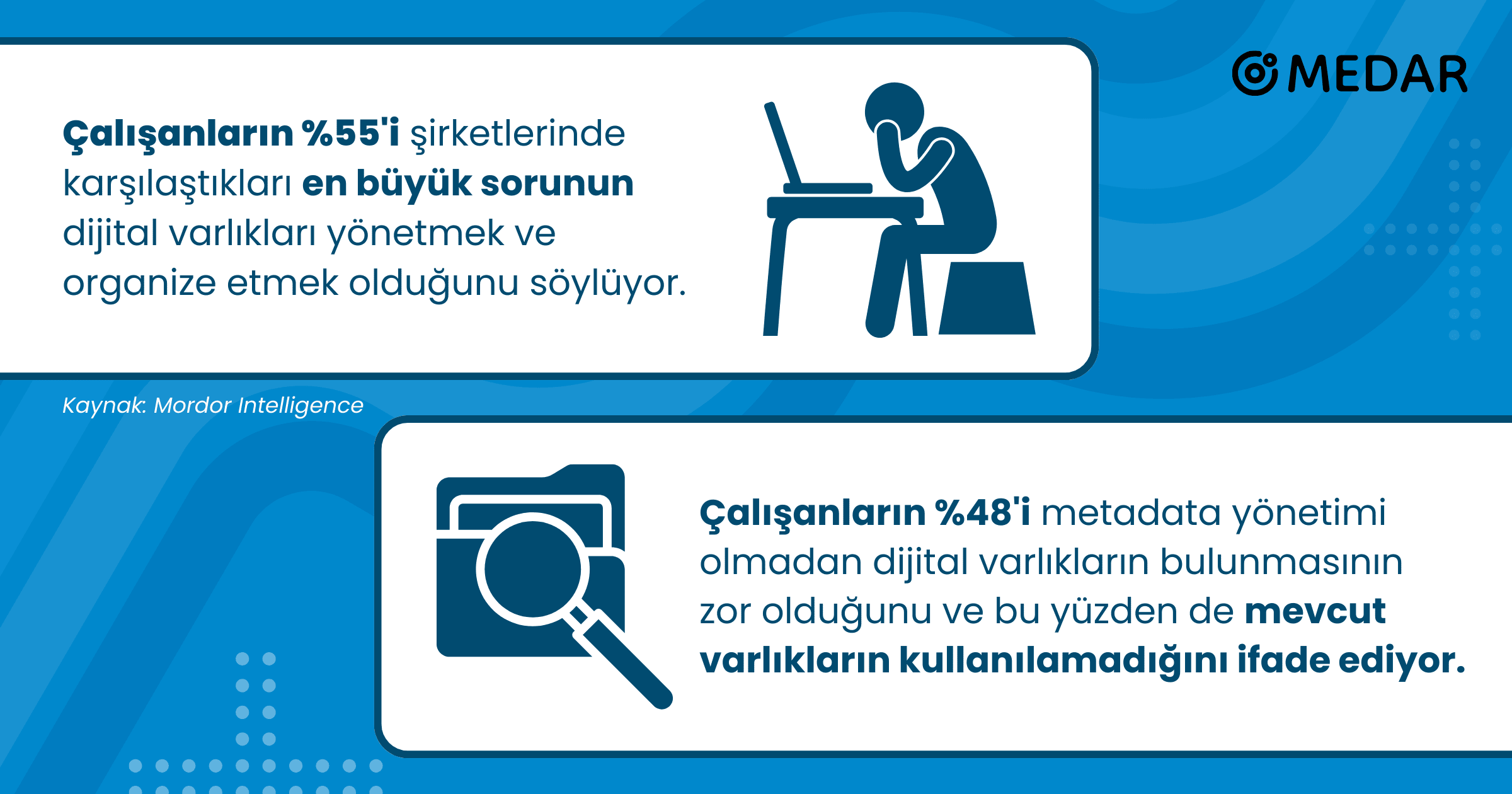 Tüm bu süreçler kurumsal yapılara ciddi bir iş yükü ve verimsizlik getiriyor. Bünyelerinde bir dijital varlık yönetimi yazılımı kullanan kurumlar tüm bu verimsiz süreçlerin önüne geçiyor, yönetilebilir ve erişilebilir bir arşive sahip oluyor.