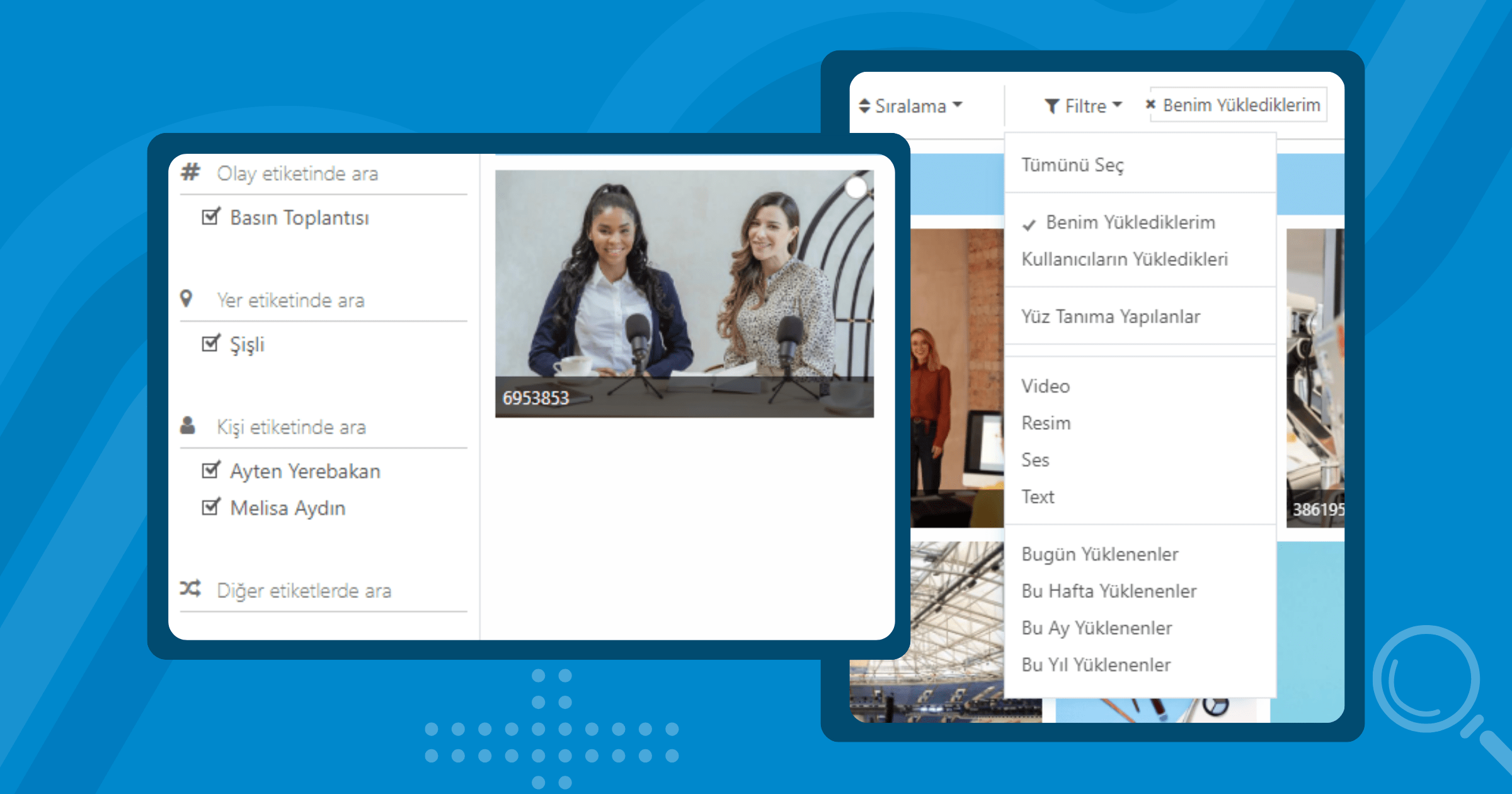 - Etiketleme: Dosyalar olay, yer, zaman, kişi gibi türlere göre manuel olarak etiketlenir. Yapay zeka desteğiyle kişi, ses, nesne türlerinde otomatik etiketlemeler yapılır.